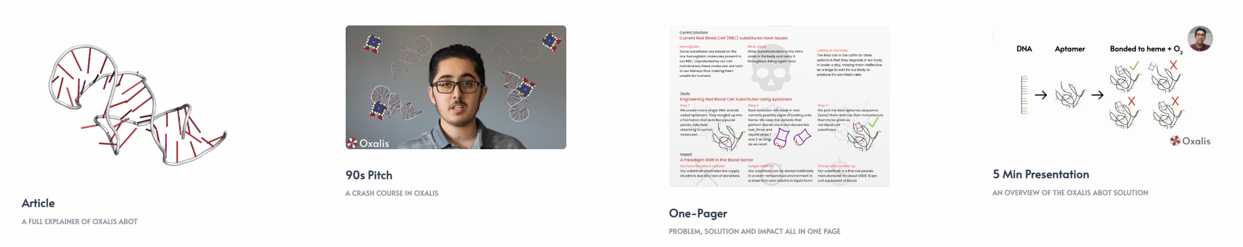 Oxalis was my team's submission for a Moonshot Hacakthon where we had to solve a major world issue using innovative technology. The problem we tackled was the donor based blood supply, instead proposing a technology that could allow blood substitutes to be manufactured in bulk.