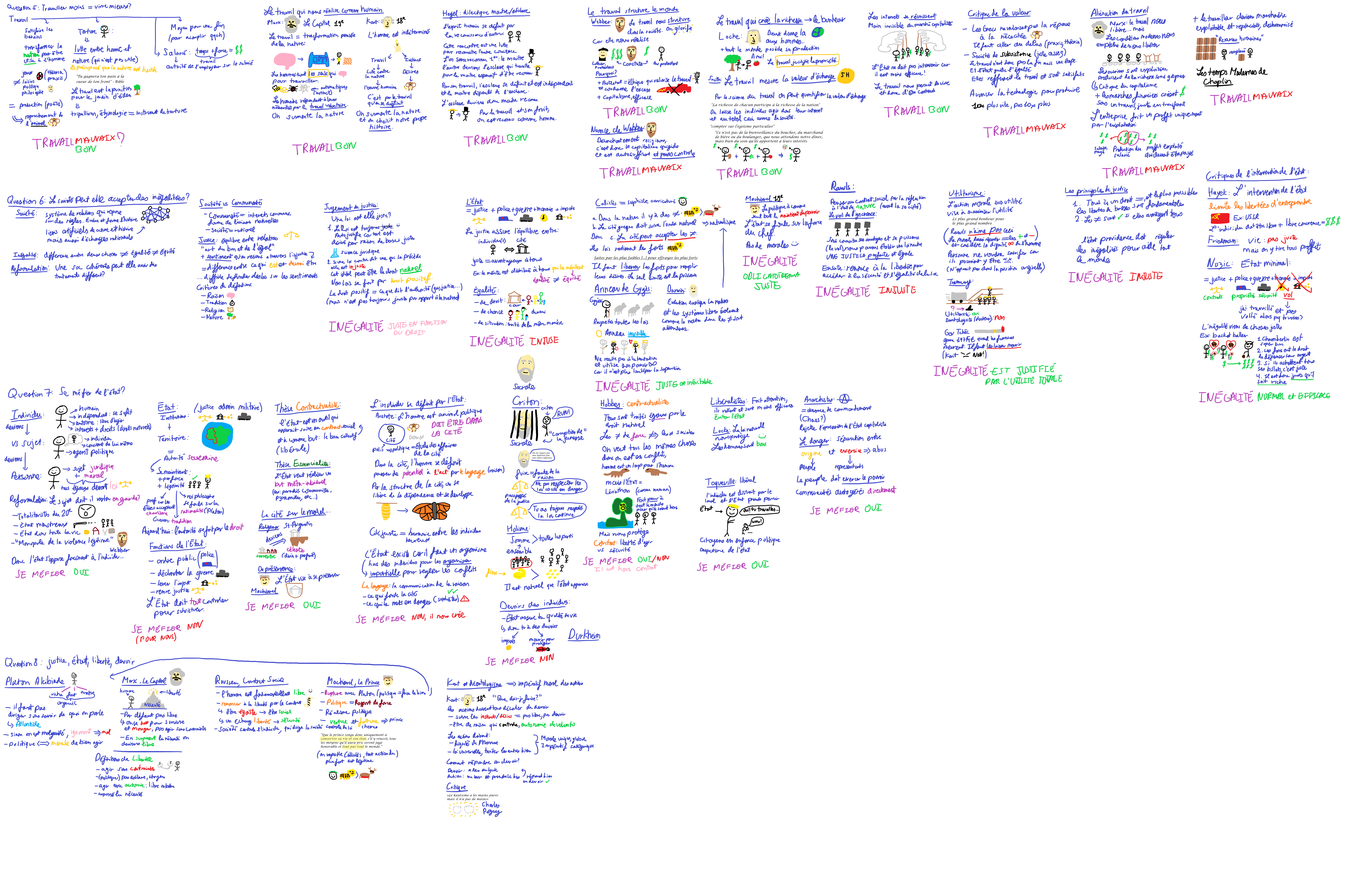 During my grade 12 philosophy course, I made a large collections of drawings in a cartoon style to explain all of the concepts we were studying in class simply, and as easy study tools.