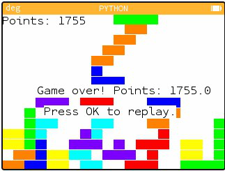 I made three games (Tetris, Minesweeper and Dance) as well as a fun way to encode and store images (I deigned my own silly image compression system because we don't easily have access to the calculator's storage).